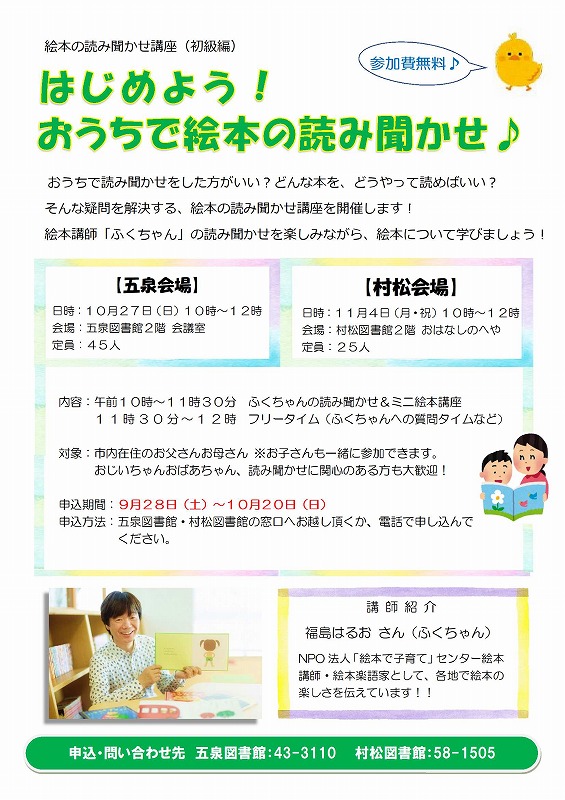 絵本の読み聞かせ講座(初級編)「はじめよう!おうちで絵本の読み聞かせ♪」