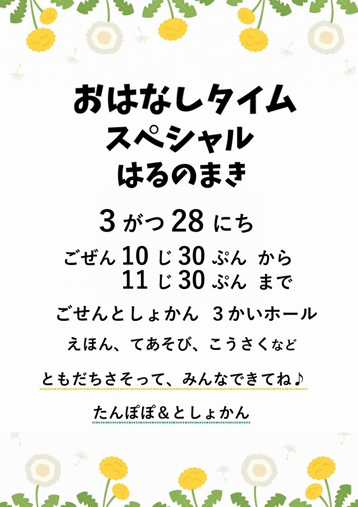 「おはなしタイムスペシャル~はるのまき~」のお知らせ